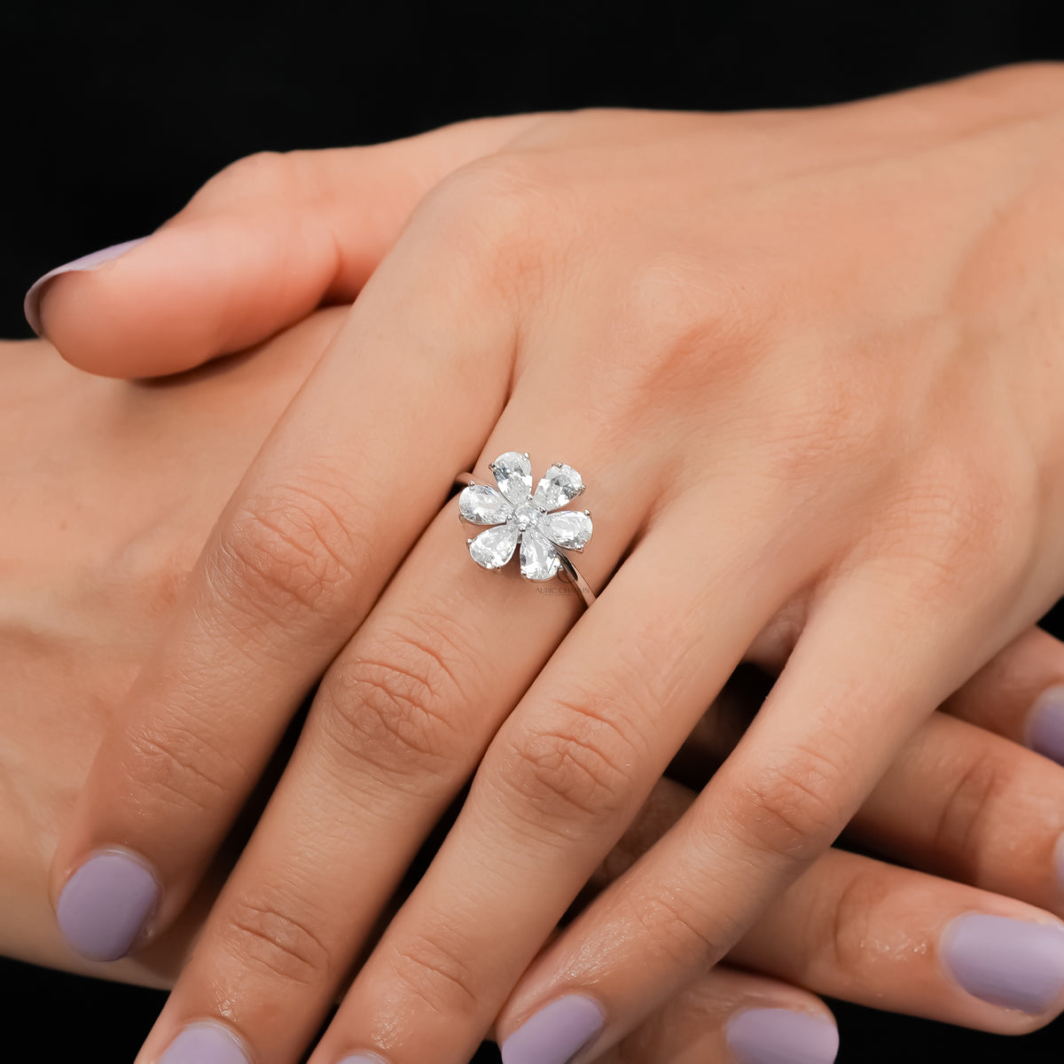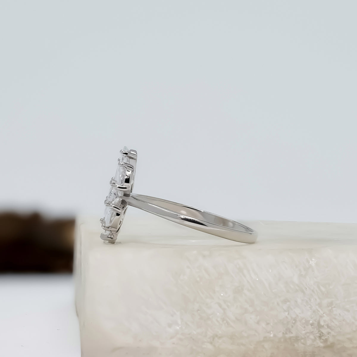 Meet Aurielle—where timeless beauty meets modern brilliance. This handcrafted masterpiece features a captivating pear-shaped lab-grown diamond flower shaped, flanked by delicate marquise and round-cut accents that dance with light in every angle.